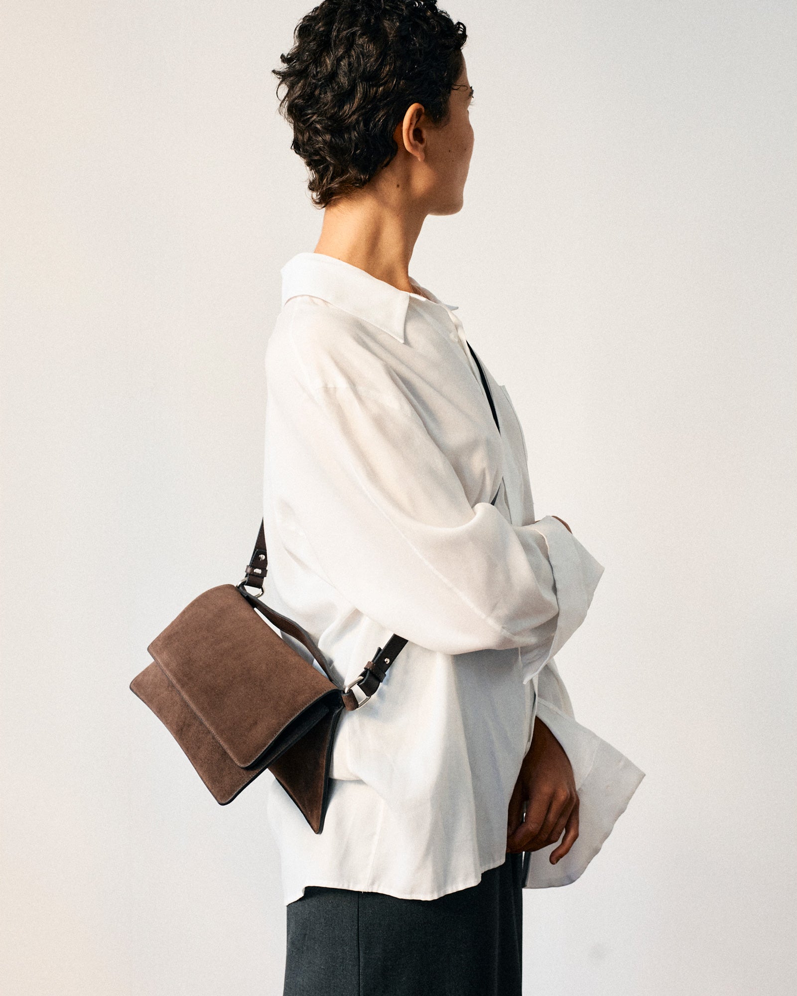 The Borsa Notte is our dinner purse, designed to hold your most essential belongings. It features two separate compartment, one with an extra pocket that holds a large iPhone. The center divider carries something small you would not want to search for: pen, lighter, tampon, lip balm. The flap features two magnets, locking the bag without adding visible elements that would break its clean lines.
